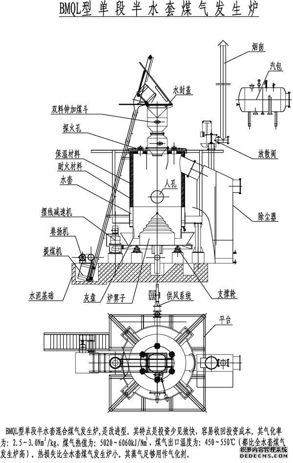正常生产的时候,煤气发生炉内的空层是保持不变的,所说的空层是炉内煤层到炉顶的距离。泰达集团曾给广东一烧制玻璃的厂家配置直径3米的煤气发生炉,空层一般保持在2.4米。正常使用时,把风机频率降低了,炉内燃烧煤的用量就少了,加入发生炉内的煤量自然就少了。泰达提醒各位:通过空层来控制加煤量,空层大了,就得加煤。如果风机的频率不降低,加煤量减少了,是很危险的,可能引起爆炸 。